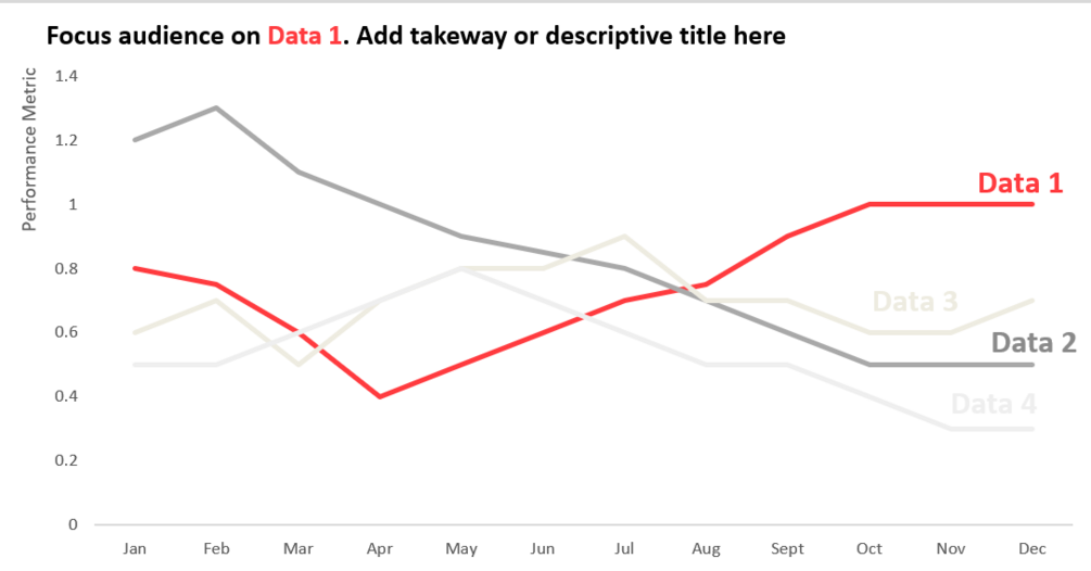 Template utilizes a custom color palette and a minimalist design allowing you to focus on the message you share and not figuring out how to make a great looking plot in excel.